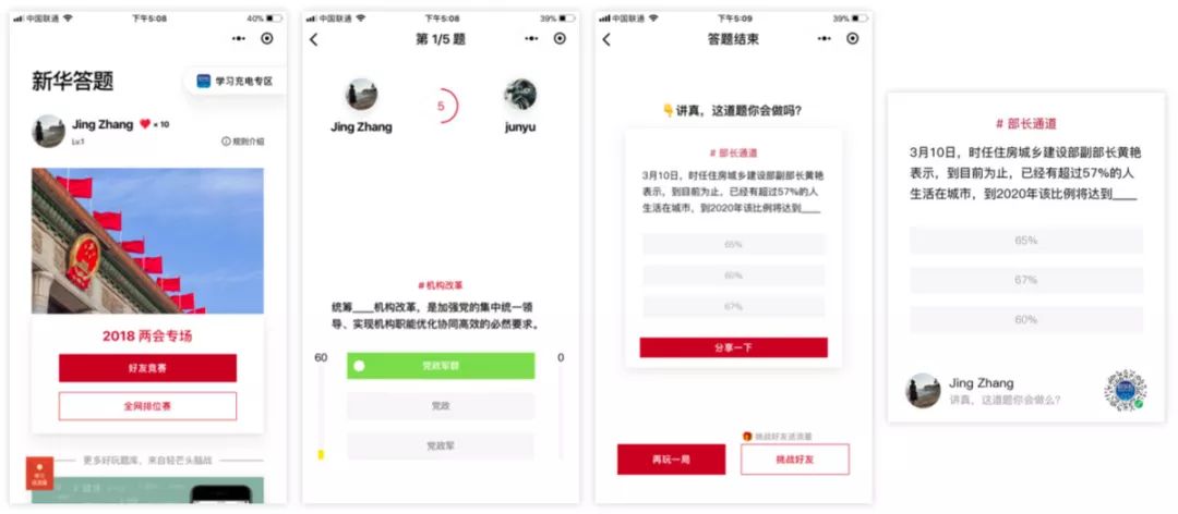 这个小程序的表现超出了合作双方的预期。很多大多数读者原本不会了解的两会内容,因为答题的形式,被更多读者消费。有一名用户在新华答题上停留了25个小时,意味着他基本消耗掉了题库中的所有问题。这表明,对阵答题作为一种内容消费的载体,开拓了一些新的、有想象空间的内容互动方式。