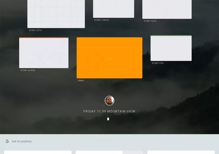 2017 年 5 月,Ars Technica 曝光了 Fuchsia 的运行画面,从画面中可以看到,Fuchsia 大量采用了卡片式设计,采用简洁的 Material Design 风格,适用于多任务模式和分屏触控操作……当然,由于主打通用性,这些画面背后的代码都是基于 Google 的 Flutter SDK 与 Dart 程序语言所撰写,能在 Android 与 iOS 跨平台运用。