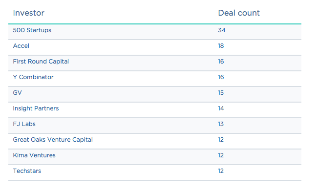 那么,谁又是最青睐这些餐饮科技企业的风投们?其中投资数量最多的是硅谷知名孵化器及早期投资机构 500 Startups,数量高达 34 起。谷歌旗下风投 Google Venture 投资数量也不少,有15起。