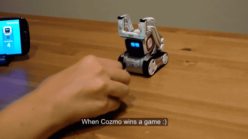 (Cozmo 在赢得游戏后高兴庆祝。动图自网络,版权属于原作者)
