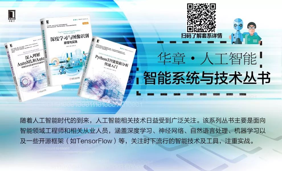 给大家带来一份书单,来自华章图书重磅推荐的“智能系统与技术”系列丛书,这个系列除了涵盖深度学习、神经网络、自然语言处理、机器学习相关的技术外,还关注到了AutoML和AutoDL(自动化机器学习与深度学习平台构建)、机器学习即服务、基于浏览器的深度学习等有意思的方向,感兴趣的同学可以看看。