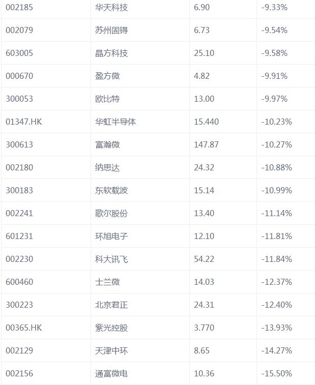 我们先来看看,中国的半导体企业,在周五的表现,大部分超跌。一周下来,几乎全面沦陷。看来,皮之不存,毛将焉附啊!