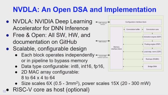 而在深度学习加速器领域,英伟达开放了其神经网络加速架构NVDLA,其配套工具及说明均可在GitHub上获得,具有可拓展及灵活性等优点,而该加速架构所使用的主处理器则可采用RISC-V核。由于FPGAs的可塑性、RISC-V以及其软件的开放,开发者可在线快速开发与验证。