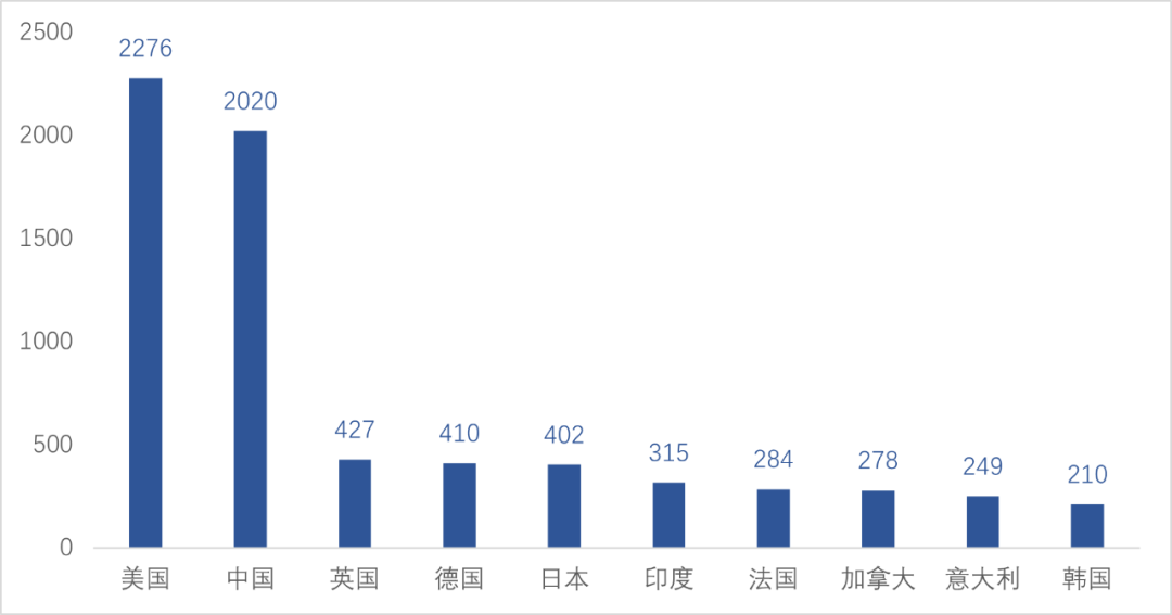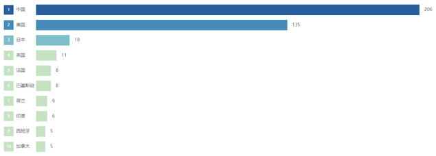 从学者所在机构分布看,高层次学者数量前十的全球机构主要为中国机构所占据,如图6 所示。这反映出中国机构在定向能领域拥有较多的高层次学者资源优势。在该领域学者最多的前 10 机构依次是:Pacific Northwest National Laboratory(美国太平洋西北国家实验室)、中国科学院、Oak Ridge Nationallaboratory(美国橡树岭国家实验室)、Argonne National Laboratory(美国阿贡国家实验室)、University of California(美国加利福尼亚大学)、南京航空航天大学、日本九州大学、东南大学、中国科技大学、Us Air Force Research Laboratory(美国空军研究实验室)。