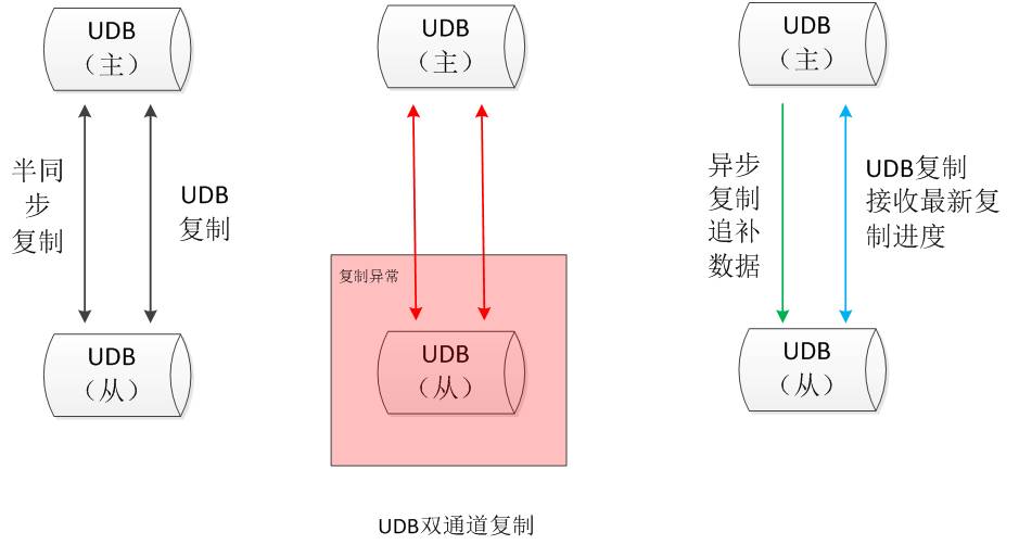 建立双通道复制,在原有半同步复制的基础上增加一条UDB复制通道: