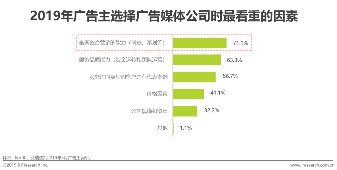 一方面,随着媒介环境和消费者注意力的不断分散,广告主已经很难通过单一的渠道或者屏幕实现营销触达,另一方面,面对日益复杂的营销环境,广告主的营销决策和执行时间周期也在不断缩短。 在此背景下,媒介和业务的整合程度,成为广告主在选择广告媒体公司时最看重的因素。 艾瑞分析认为,整合化趋势在户外广告市场同样适用,尤其是多场景的户外资源覆盖能力,将极大地减少广告主的多方渠道商务对接成本,满足整合投放的需求。 因此,通过内部扩张和外部并购等方式实现整合化,将是未来户外媒体公司的重要竞争壁垒。