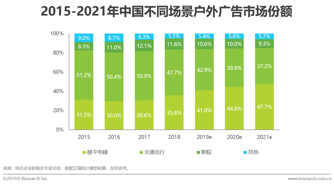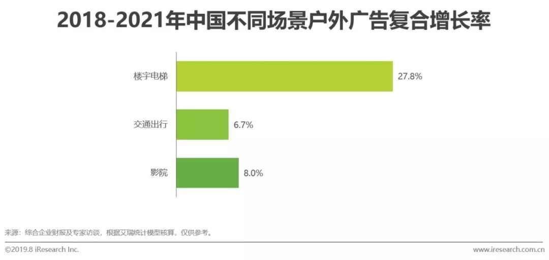 楼宇电梯、交通出行和影院是户外广告头部场景