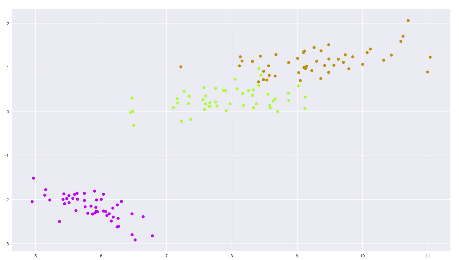 color_mapping = {0: sns.xkcd_rgb['bright purple'], 1: sns.xkcd_rgb['lime'], 2: sns.xkcd_rgb['ochre']}