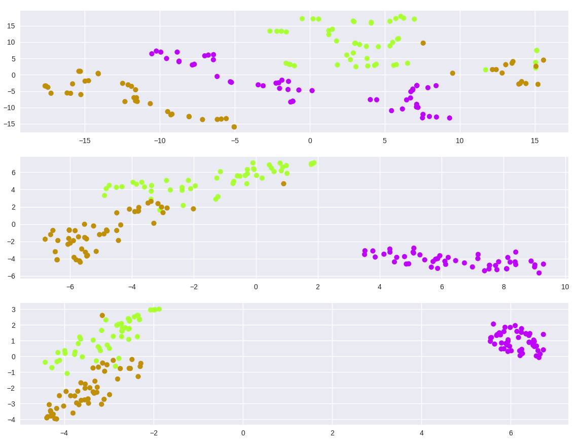 正如我们从数学中了解到的那样,你可以看到给定一个好的困惑度,数据会聚类,但要注意超参数的敏感性(如果不给梯度下降提供学习率,我无法找到聚类)。