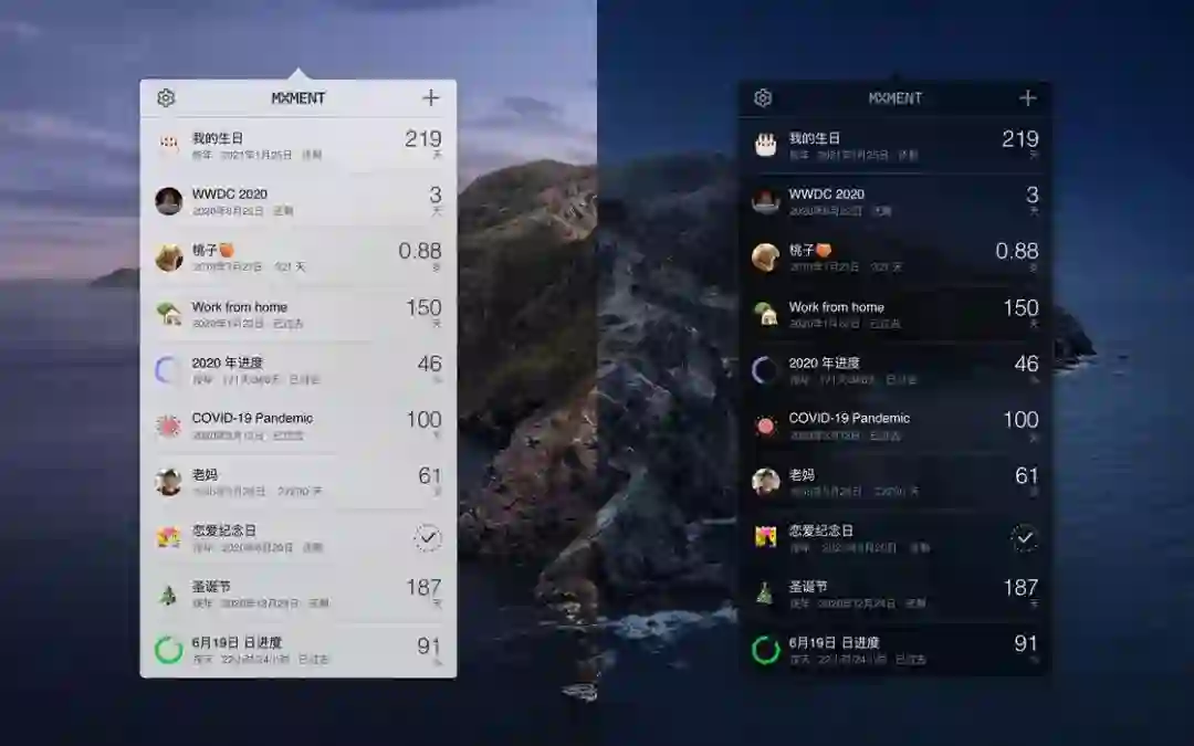 Moment 是 macOS 上的一款倒数日应用,你可以用它来计算距离 deadline 还有多少时间,并将其添加至菜单栏中时刻提醒自己。