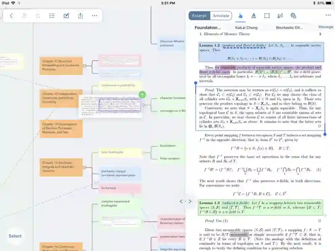 致力于把书「读薄」的 MarginNote 拥有多种不同视图,你可以在文档视图下划出重点,随后在思维导图下来理清它们之间的关系,最后在复习界面将它们消化掉。花点时间适应一下 MarginNote 的逻辑,你也能用它来高效汲取书本里的知识。对于学生党来说,MarginNote 或许能成为你消化知识的得力助手。