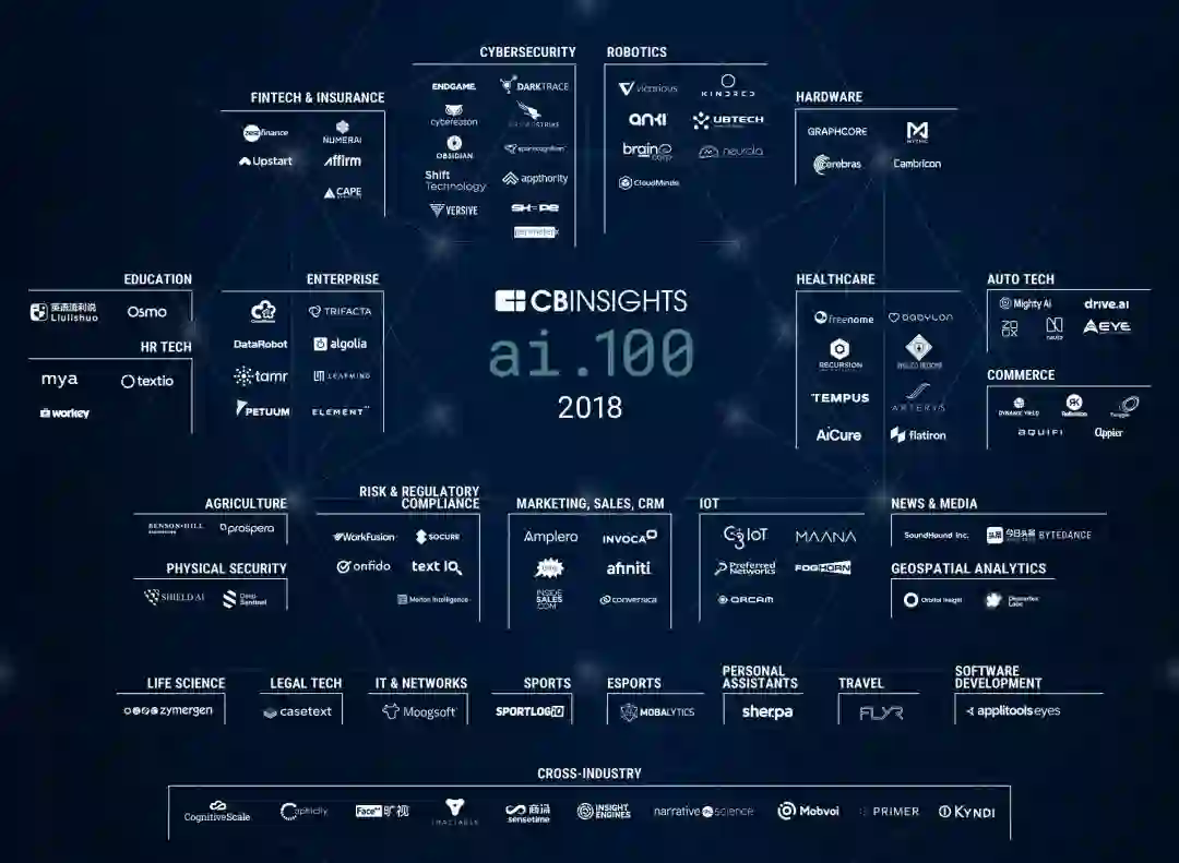 2018AI行业地图丨CB Insights:这100家AI初创公司募资额超百亿
