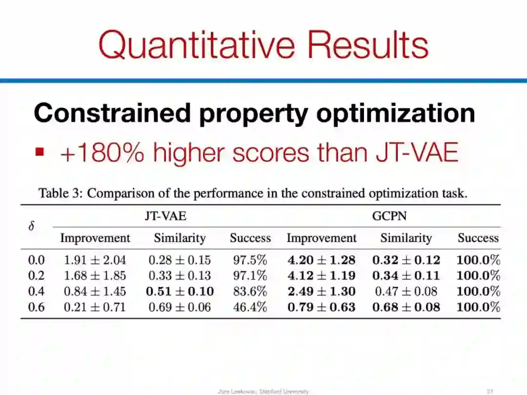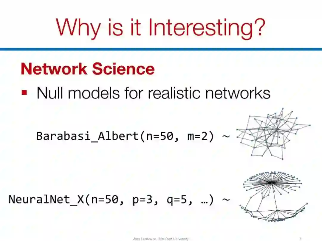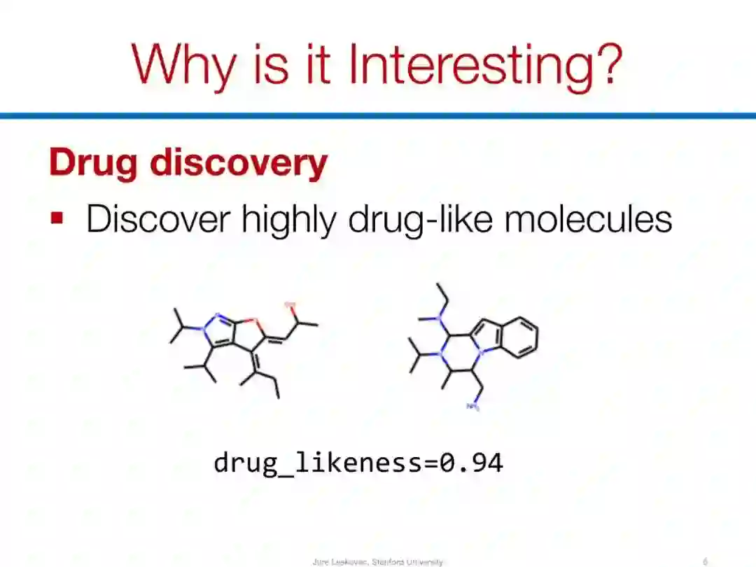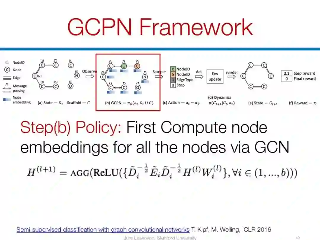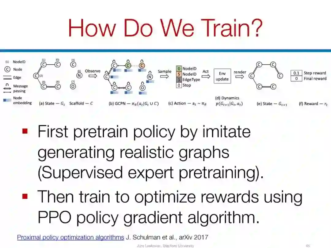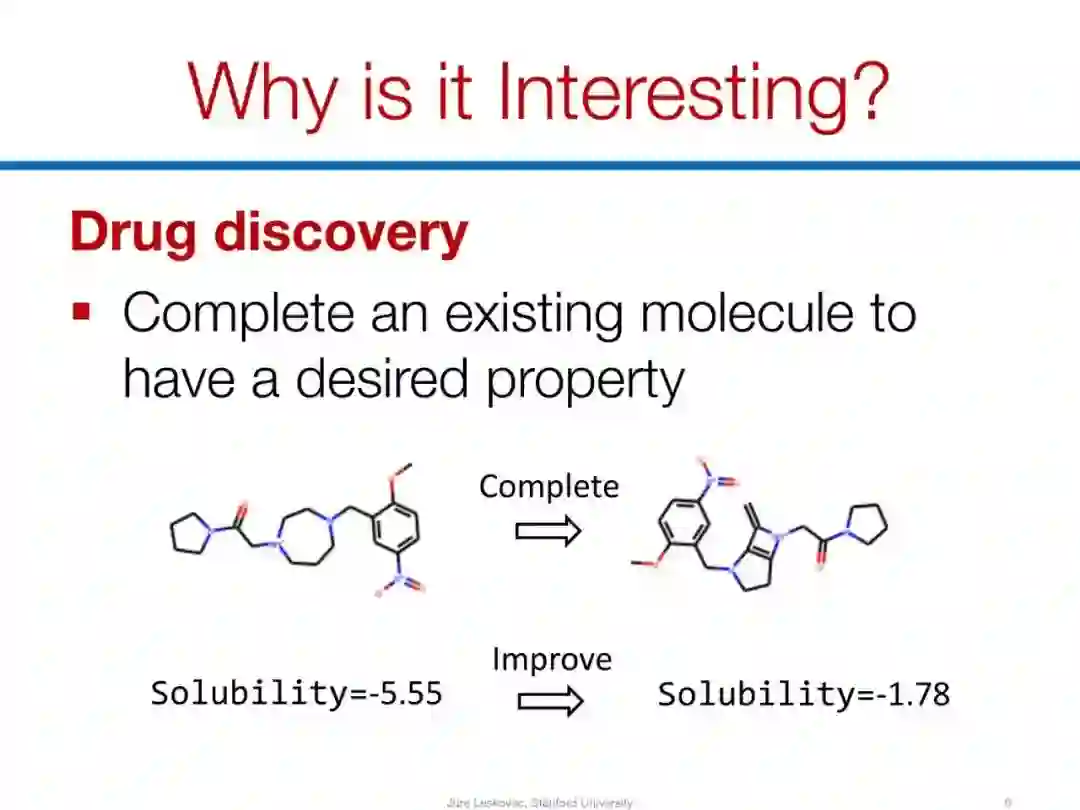 此外,在 ICLR 受邀演讲上,Jure Leskovec 教授还就图深度生成模型做了演讲。在这次演讲中,Jure 阐述了图生成模型的方法和应用,并详细介绍了他的最新成果,GraphRNN 和 Graph Convolutional Policy Network。