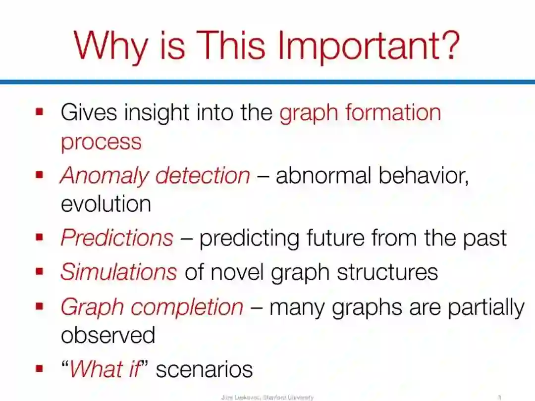 斯坦福大学教授 Jure Leskovec 是图网络领域的专家,图表示学习方法 node2vec 和 GraphSAGE 作者之一。