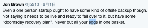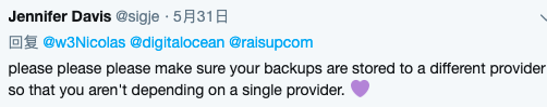 网友 Davis 则建议要把备份存在另外一个服务商那,就不用只依靠一个服务商了。
