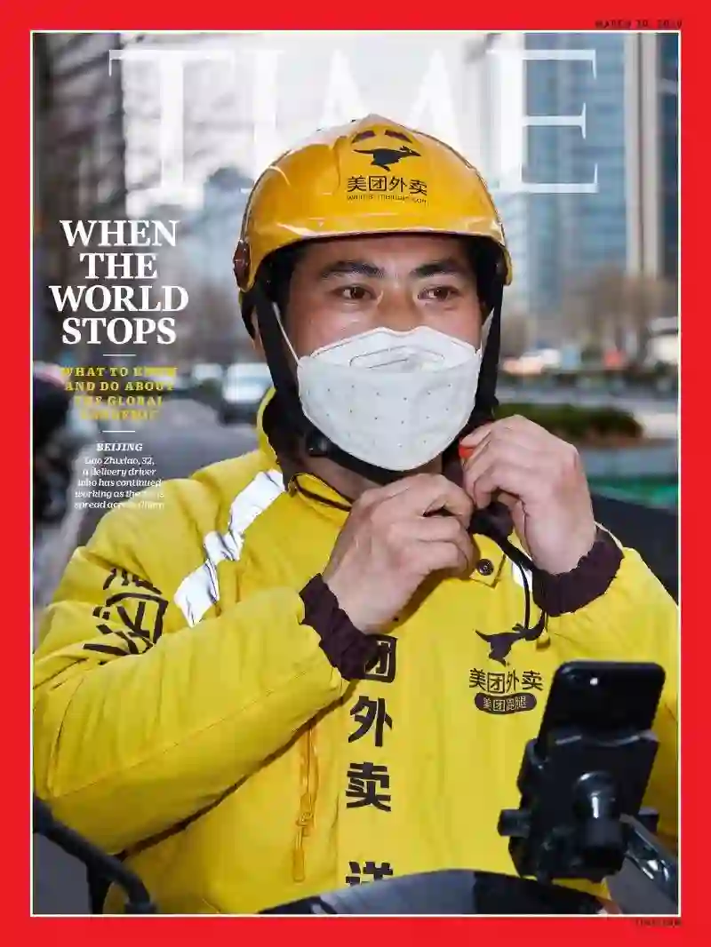 美国《时代》杂志日前出版一期疫情专刊,其中,中国外卖小哥高志笑(Gao Zhixiao,音译)登上期刊封面。《时代》杂志介绍了疫情期间高志笑的工作生活,例如每天花20分钟给摩托车消毒,每天进行健康检测等等。《时代》杂志还报道了世界其他地区人们的生活变化。(新浪财经)