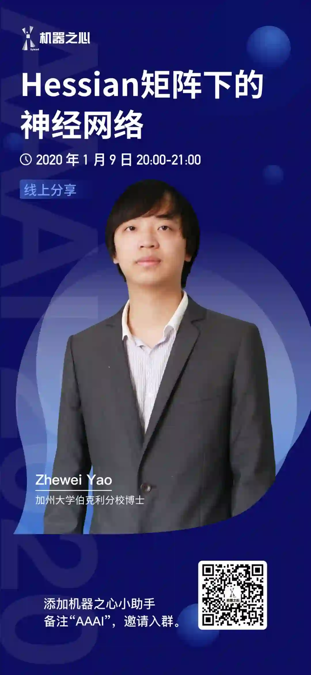 最新一期机器之心 AAAI 2020 线上分享,我们邀请到了加州大学伯克利分校 Zhewei Yao 博士为我们介绍将二阶方法用于训练深度神经网络的最新成果。这是一期硬核的线上分享。