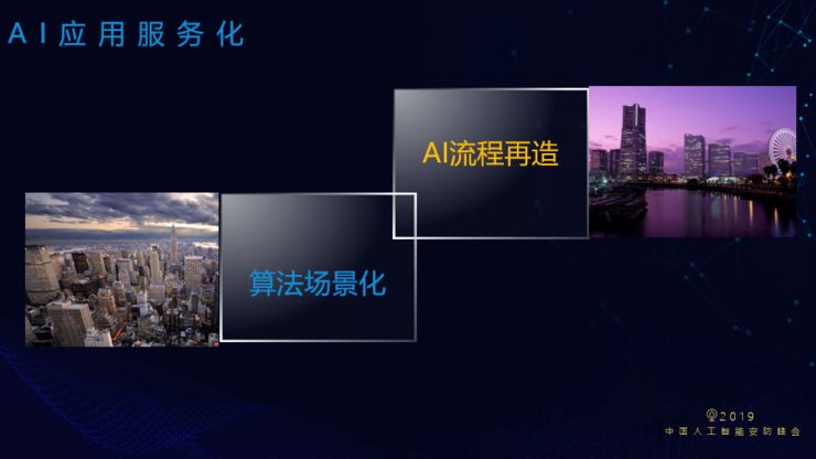 安防行业的另一个趋势是AI应用服务化。AI的创新实际上来源于算力和深度学习算法的突破,但现在的AI是弱人工智能,没有通用性。除非未来强人工智能能够在算法和技术上有所突破,否则每一个场景都需要根据专门的数据集训练算法,也就是算法的场景化。而算法上的场景化要求企业对每一个行业都有充分的理解,同时对行业流程进行再造。