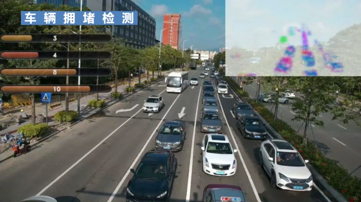 我们开发的车辆拥堵检测系统,可以识别每条车道的车辆数量和类型。