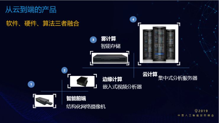 深瞐科技成立六年以来,始终致力于提供从云到端的产品和解决方案。智能前端方面,我们为国内多家摄像机企业提供各类场景的识别算法。边缘计算方面,我们提供嵌入式的视频分析器。雾计算方面,我们提供智能分析的存储设备,我们从前端摄像机采集数据后首先要存储,存储这个节点的智能化是整个应用的基石。云计算方面,我们提供集中式的视频分析服务器,包括视频分析算法。