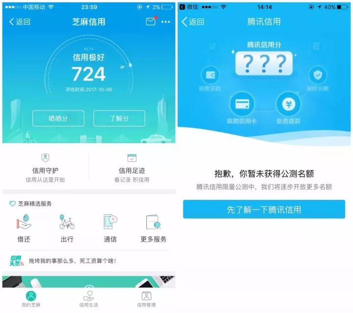 业内认为,未来阿里、腾讯将占据除央行征信外的巨大市场,展开正面对决。