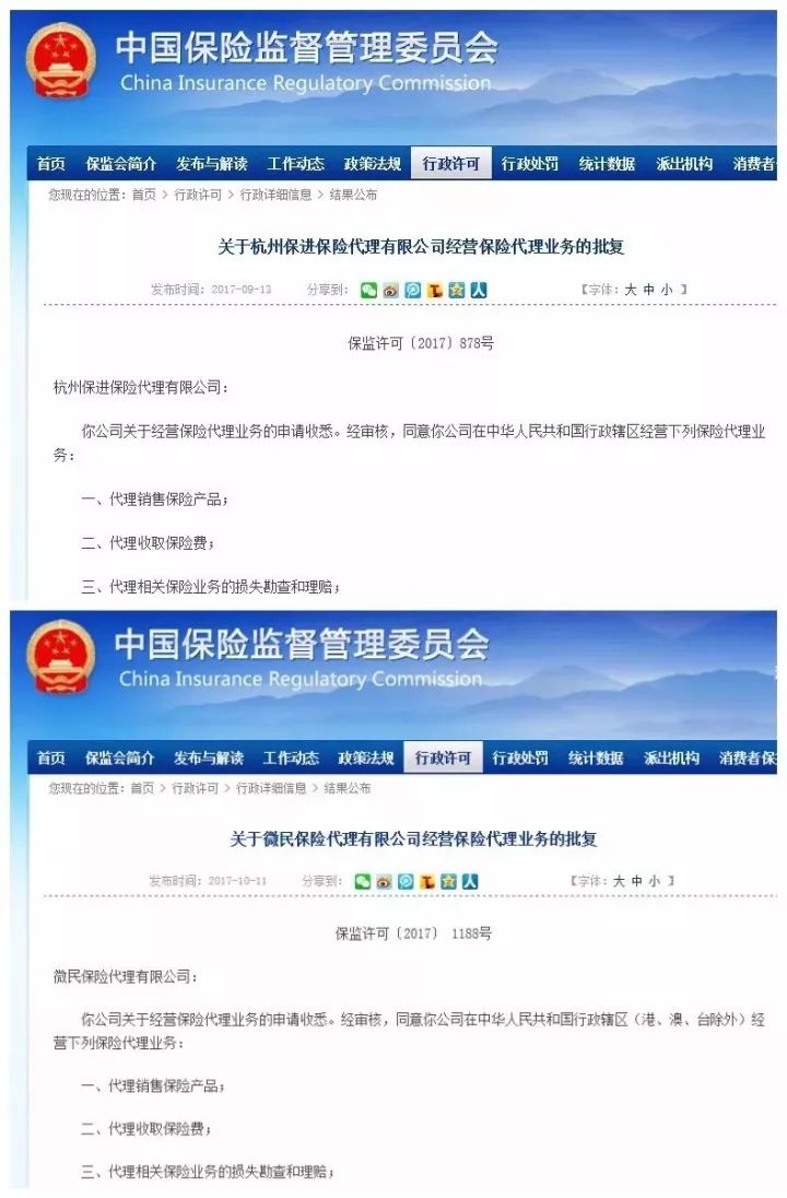 虽然有过合作,但是这几年阿里、腾讯在保险业务上的斗争也很激烈。今年10月11日消息,由腾讯持股的微民保险代理有限公司正式获得了保监会批准。