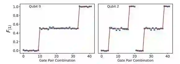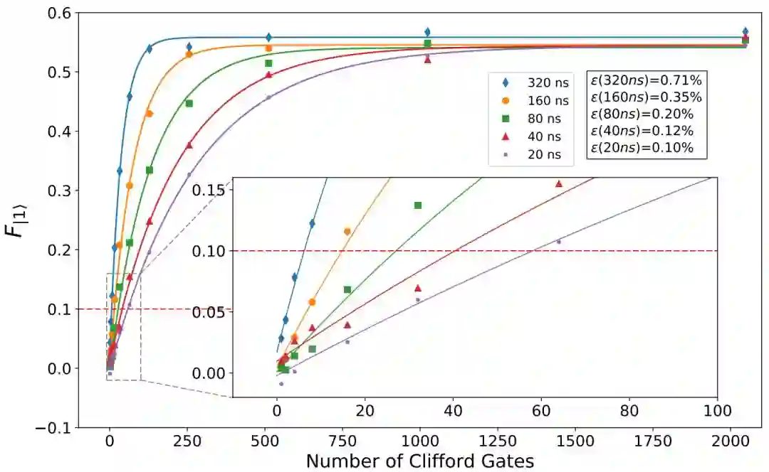 为了评估操作时序对量子算法保真度的影响,论文执行了对单量子比特的随机化基准测试(single-qubit randomized benchmarking)。这种测试可在常用的的噪声模型下评估一组量子操作的平均错误率。实验过程中,通过使用 eQASM 的显示时序控制能力,连续的量子比特门的起始点之间被插入不同间隔时间(320、160、80、40 和 20 ns)。实验结果如图 12 所示。数据显示,量子操作之间的间隔越大,平均每个量子操作的错误率就越高。这不仅表明了量子操作的时序对最终计算结果的保真度有显著影响,更证明了为实现针对特定平台的优化(尤其是编译层面的优化),在 QISA 代码中显示规定量子操作的时序是必要的。