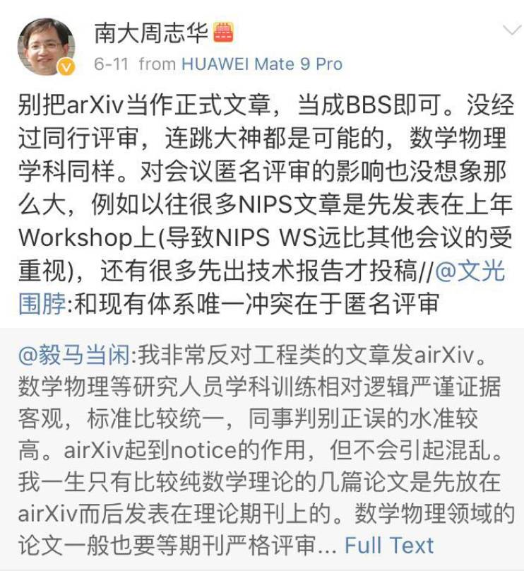 周志华评arXiv:别当做正式文章,当成BBS即可