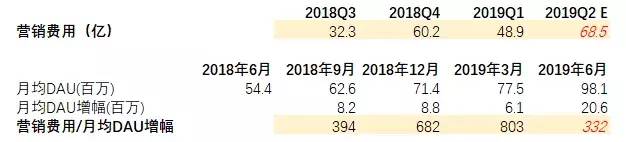 我们假设补贴费用和GMV成正比,按照这个逻辑来推测,2019二季度补贴约为20亿人民币左右,必定也是新高。