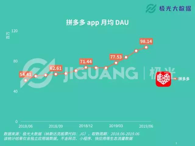 [8] 拼多多App月均DAU, 极光大数据