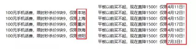 对于“制造稀缺感”,我们从拼多多的部分广告就能感受出来——各种“仅限XX地区”、“限时秒杀”的字眼层出不穷。