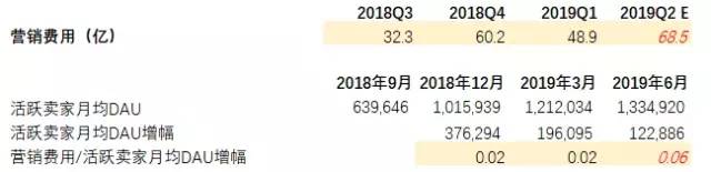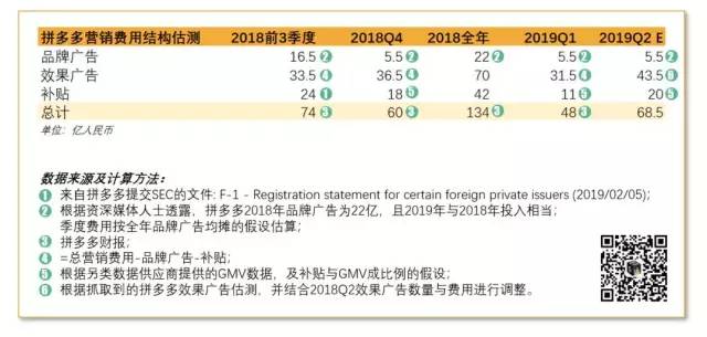 因此,我们对拼多多2019年品牌广告费用的预测依然保持去年22亿左右的规模,这里并没有发现增量。