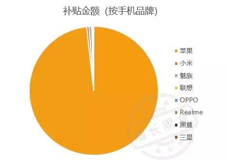 详细来看,哪种手机品牌补贴金额最多呢?毫无疑问是苹果,单单苹果手机就补贴了4.3亿左右。可见,拼多多对iPhone的补贴支撑起了活动的半边天。