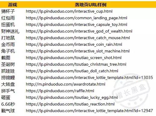 通过ADBUG提供的广告数据,我们逐一分析了拼多多在线广告的落地页发现,其效果广告的作用主要包括以下几个方面: