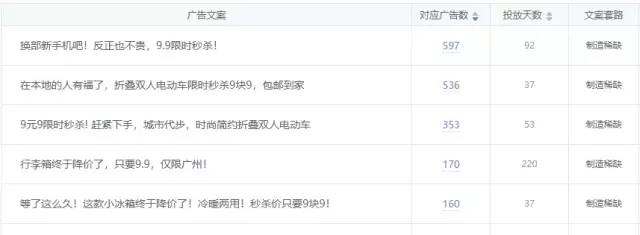 (部分“制造稀缺”的广告文案;数据来源:ADBUG)