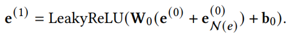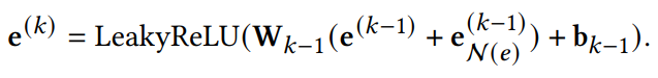 并相应得到了节点 𝑒 通过将其邻点的表示聚合为自己的one-hop表示公式以及multi-hop表示公式,如下: