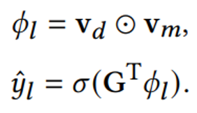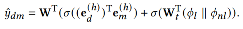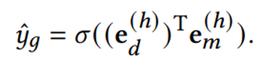 KGNN和TextCF分别学习了数据集和方法在结构和描述特征方面的嵌入表示。我们让模型分别学习和优化这两种表示,然后结合它们预测的概率,生成最终的交互概率,如下所示: