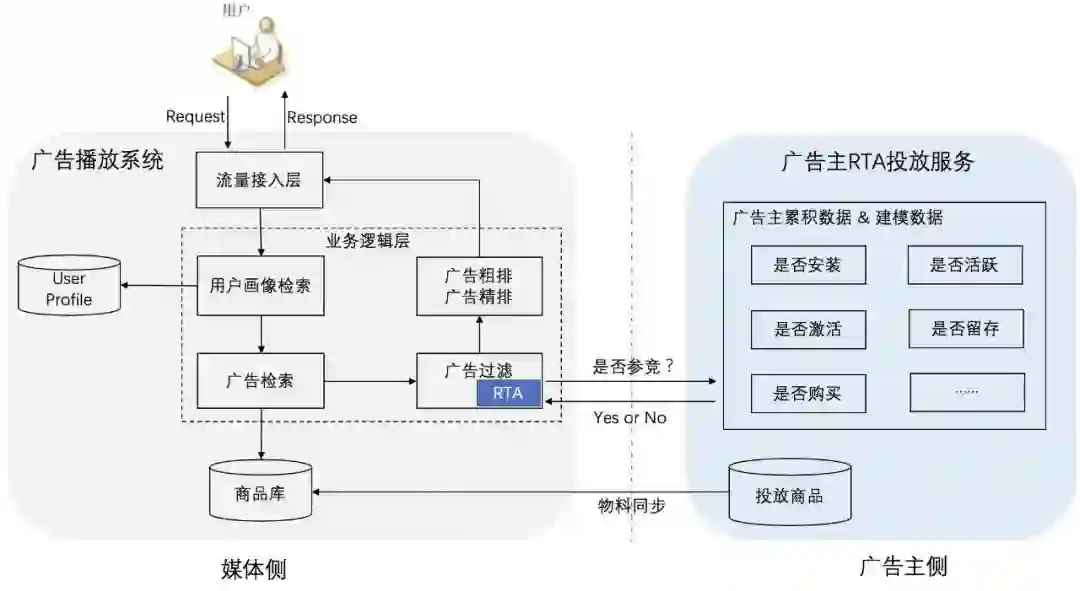 (1)精准人群定向:广告主基于自有数据(或模型)判定每次请求的用户价值,返回广告平台“是否参与本次竞价”的决策。