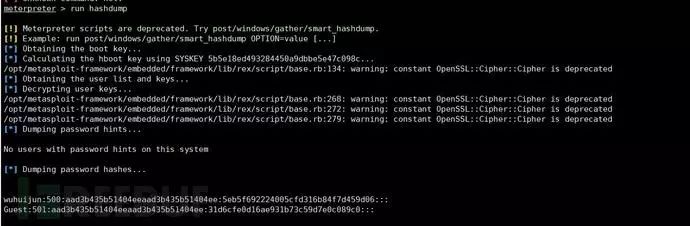 wuhuijun:500:aad3b435b51404eeaad3b435b51404ee:5eb5f692224005cfd316b84f7d459d06:::Guest:501:aad3b435b51404eeaad3b435b51404ee:31d6cfe0d16ae931b73c59d7e0c089c0:::