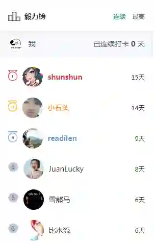 我们新增【毅力榜】,为坚持不懈的你加油呐喊: