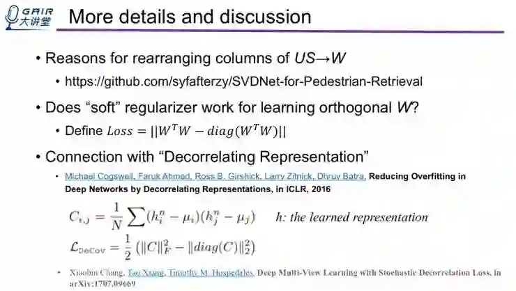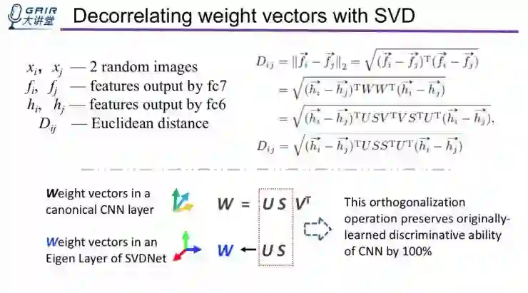 另外我觉的比较有启发意义的是,SVD是对权矩阵进行正交化,它对特征表达本身进行去相关有什么联系也是值得思考的。这里就有两篇论文是这么做的,推荐大家看看。(论文题目在上图中)