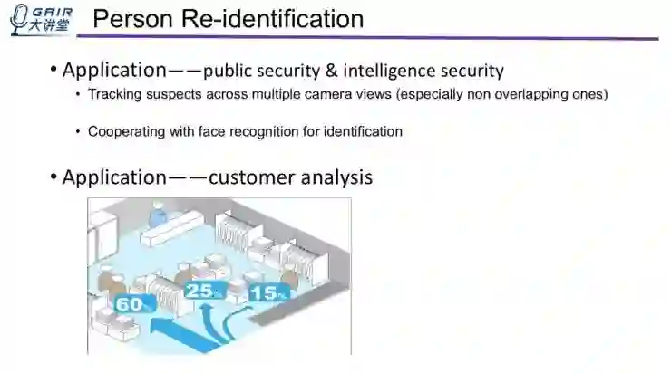 比如可以通过行人再识别做跨视角的嫌疑犯追踪。同样也可以和人脸识别联合起来获得一个在监视场景下的身份鉴定效果。在商业上,比如可以在实体零售里,判断同一个客户对商品的感兴趣度。