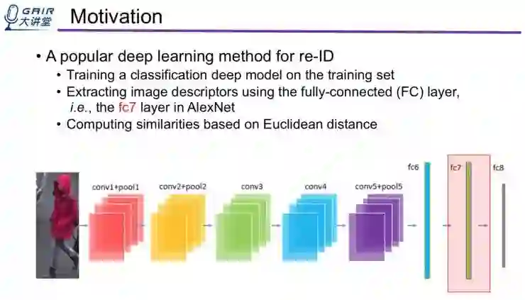 行人再识别常用的深度学习方法通常有三个步骤。首先在训练集上训练一个分类网络,然后,在网络收敛之后,用它的全连接层的输出作为他的特征表达。最后,对所有的图像特征,计算他的欧氏距离,判断他们的相似性。