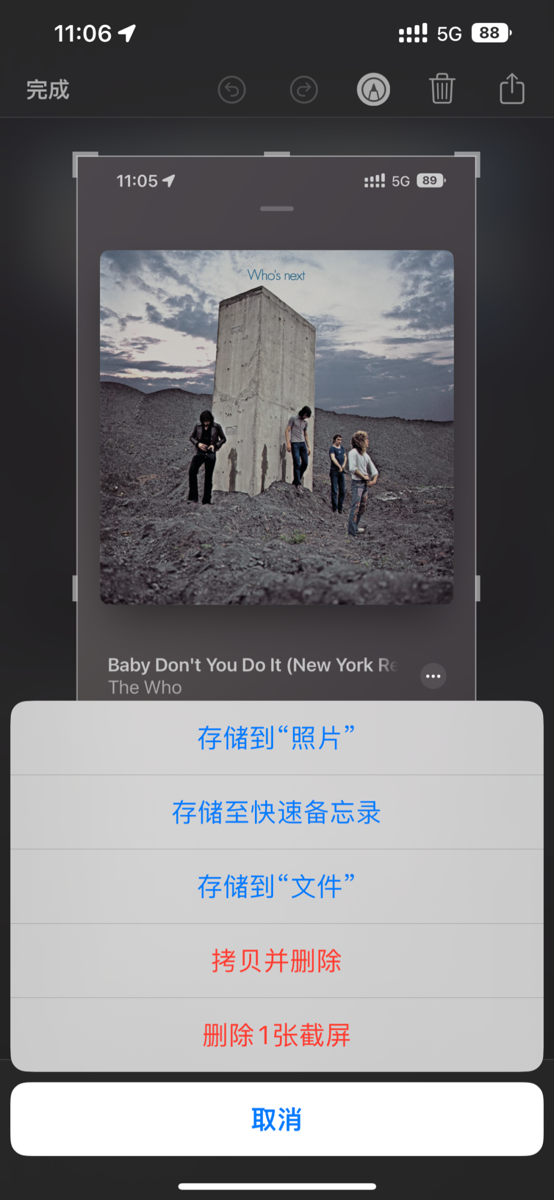 最近几个测试版,iOS 16 对截图后的操作新增了多个选项,而在 Beta 5 中,iOS 16 在原来删除截图的基础上又新增了一个「拷贝并删除」的选项。