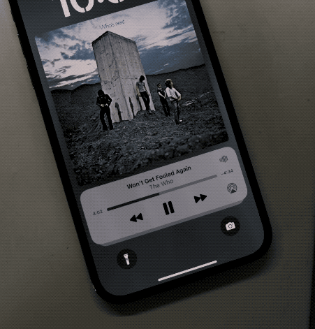 在 Beta 5 中,锁屏界面的正在播放组件中出现了一个新的图标,这个图标会根据当前播放音频的律动来进行变化。也许这个功能是为了和 Apple Music 播放界面中的动态背景相呼应,但是放在锁屏上着实好像有点鸡肋。