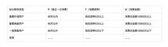 这就是RFM模型,曾经在传统行业被频繁应用,而在以消费为主的运营体系中能够移植过来为我们所用,它既是CRM系统的核心,而是消费型用户分群的核心。