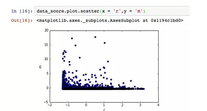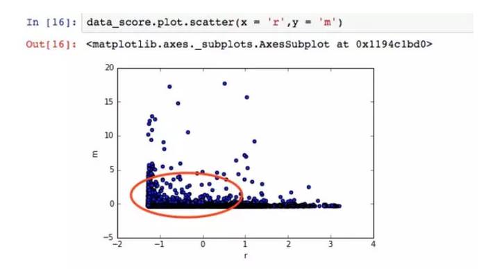 散点图上暂时看不出用户分群的规律,只能初步判断,大部分的数据呈集中趋势。