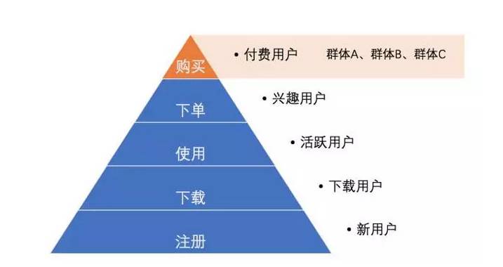 用户分层,一般四五层结构就可以了,过多的分层会变得复杂,不适合运营策略的执行。