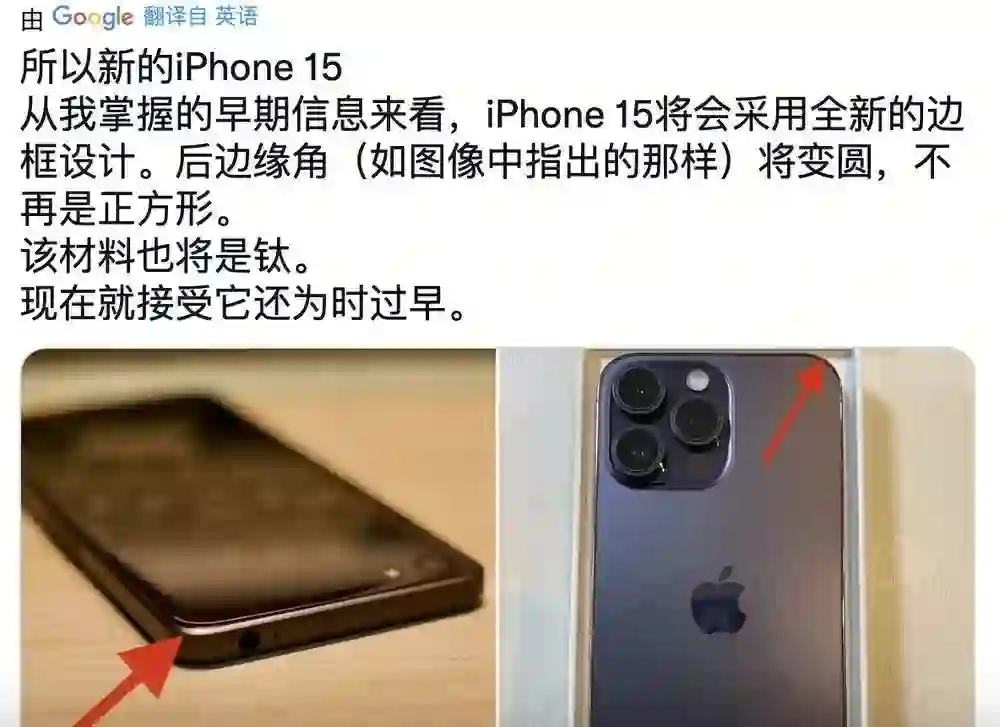 【iPhone15或告别纯直边,重量或许会进一步增加】近日多方消息表明,苹果要在明年的iPhone 15上抛弃纯直边的设计,在背部的边框上引入了一些弧面的角度,握持起来更加柔和。不过这可能也预示着一个坏消息,iPhone 15的重量或许会进一步增加,苹果不得不改进边框设计来优化手感。另外,iPhone 15系列还将告别Lightning接口,全面转化为USB-C接口,大家出门再也不用多带一根线了。(快科技)