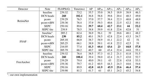 我们SEPC在mAP45左右的baseline上依然有接近3mAP的提升,我们在甚至在单尺度测试的条件下得到了一个mAP为50.1的单阶段检测器。